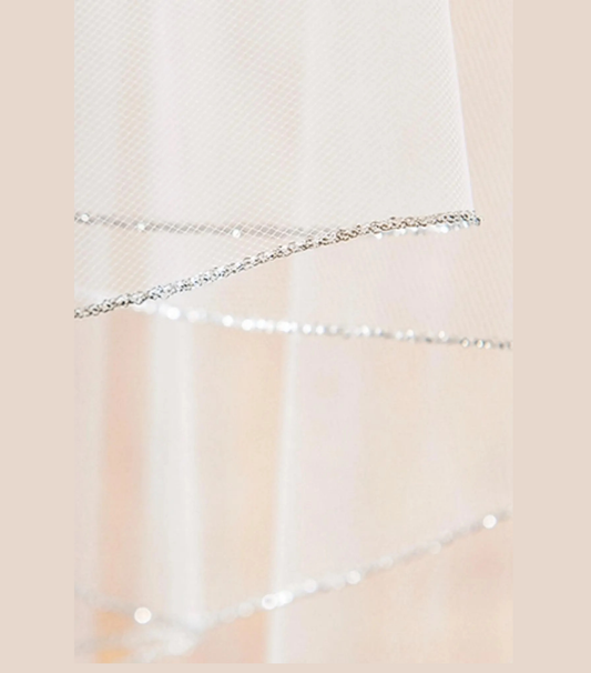 Short White Tulle Bridal Veil with Silver Edge – Double Layer Minimal Wedding Veil