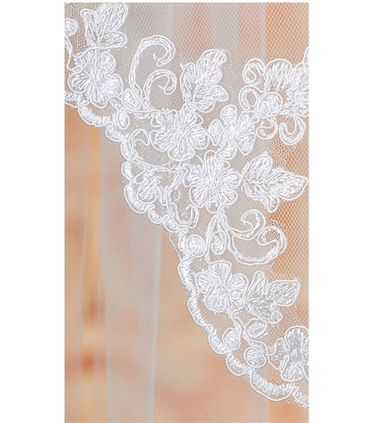 Elegant White Mantilla Veil with Floral Lace Edges | Bridal Headpiece