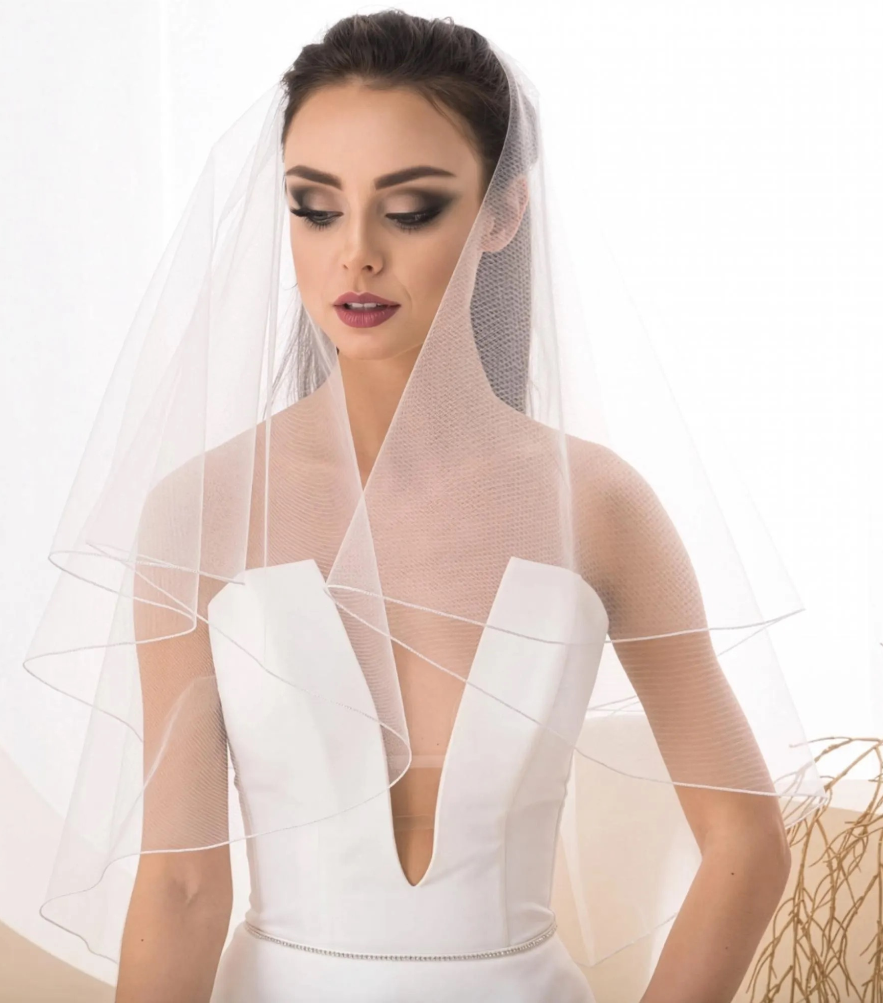 • Style: Short bridal veil, minimalist & elegant